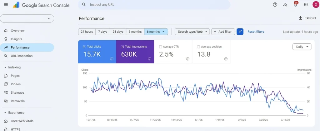 Growth began flattening. A few domains, particularly those targeting competitive finance and health queries, showed early signs of suppression. Crawl frequency dropped in Search Console for several properties. Rankings on previously stable URLs slipped 5 to 10 positions without any changes to the pages themselves.